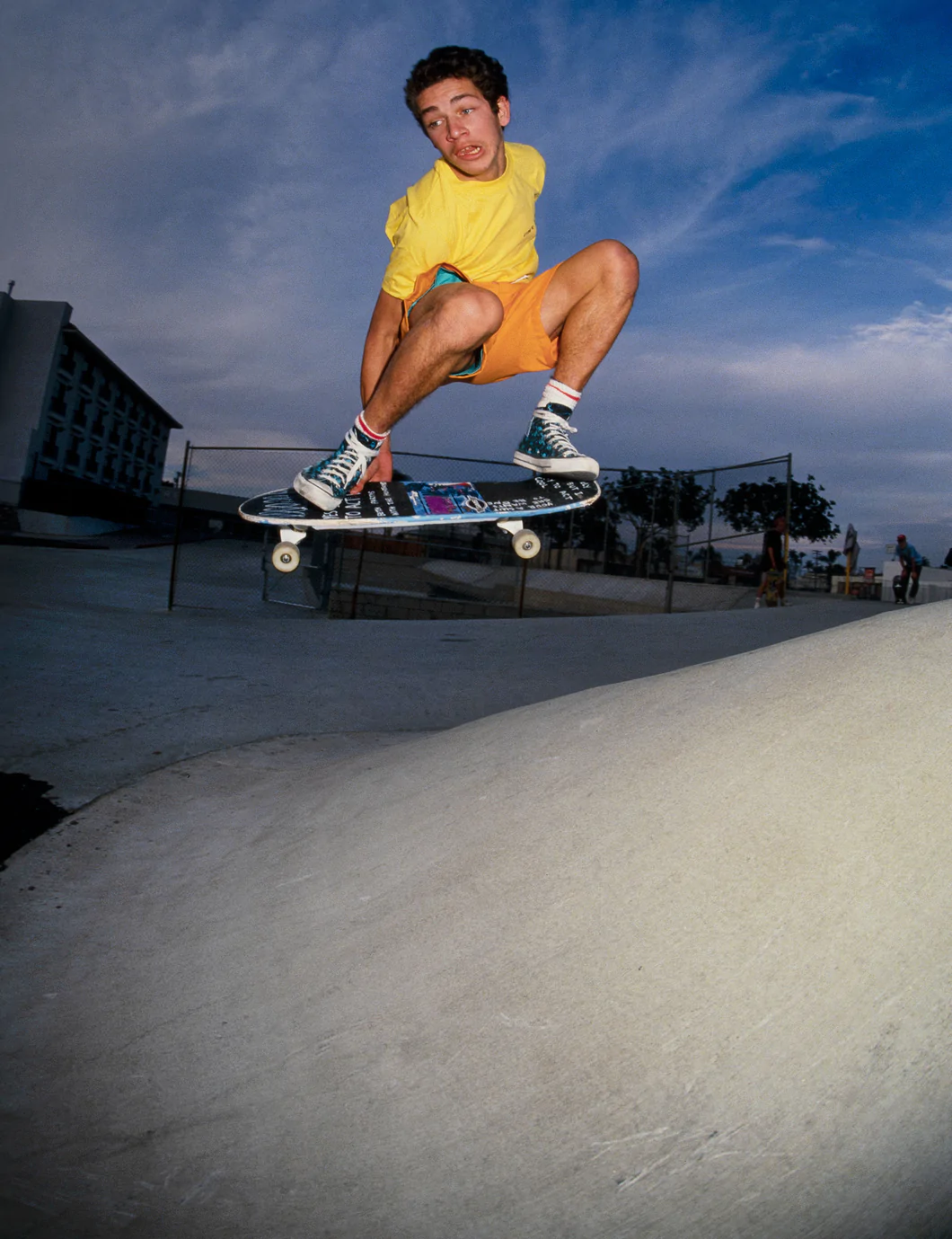 Converse had their iconic high-top “All-Star” shoes and Vans started to create high-top styles, ideal for vert or pool skating. At this point, street skating wasn’t quite a thing yet, so high-top shoes were the go-to skate style.